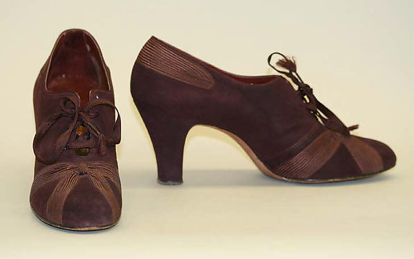 The 1930s is one of my favorite periods for footwear. Everything is just so darn snazzy! Perforated leather, interesting stripe decorations, oxfords, cutouts, color blocking ... ah, so much good stuff. Here are some terribly inspirational 1930s shoes to drool over: